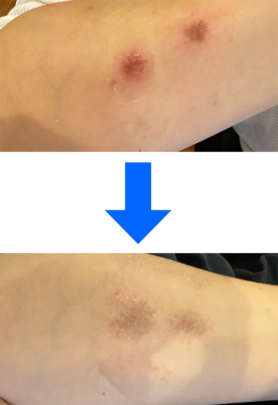 まだ、傷が治っている途中のため、乾燥の痒みはありますが、こんなに早く治って感動しています。