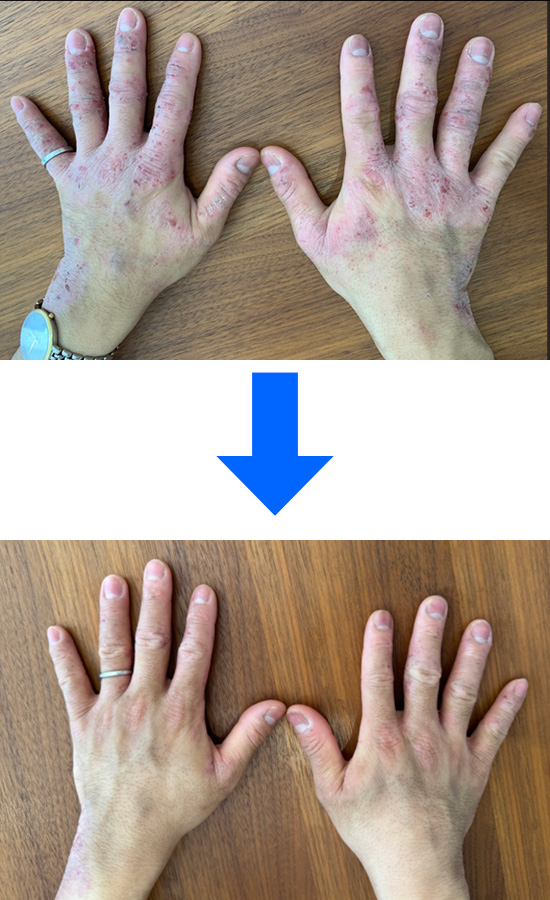 でも、気づけば年々ひどくなり、手は常に痒く、ひび割れ、時には出血し、滲出液が出ることもありました。